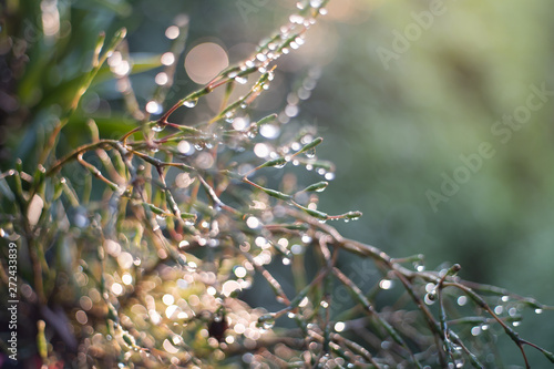 The Morning Rain Splashes And Drops Of Clean Water Sunlight Background And Texture Bokeh