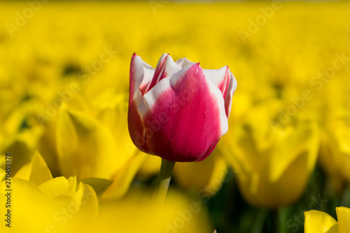 Close Up Of A Single Tulip Flower With Blurred Flowers As Background