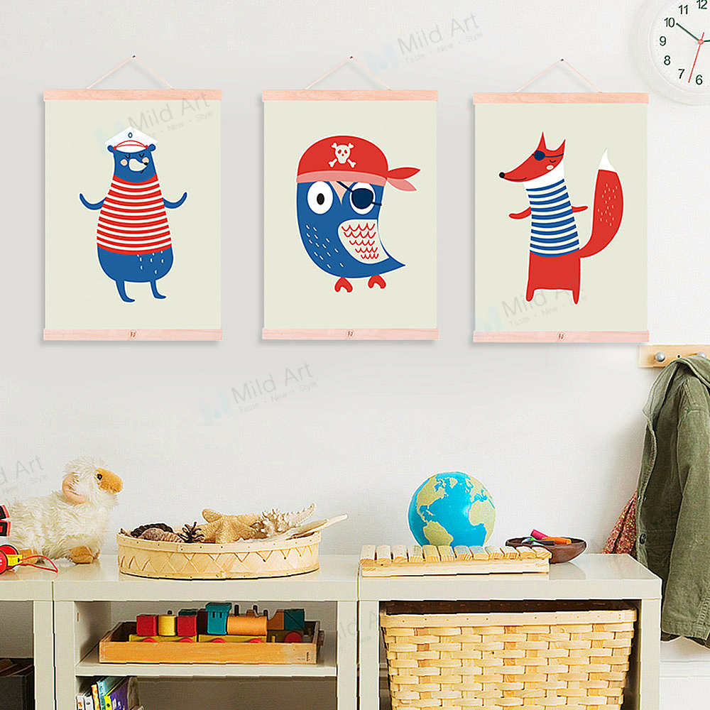 Kawaii Sailor Animals Bear Fox Framed Scroll Art Portrait