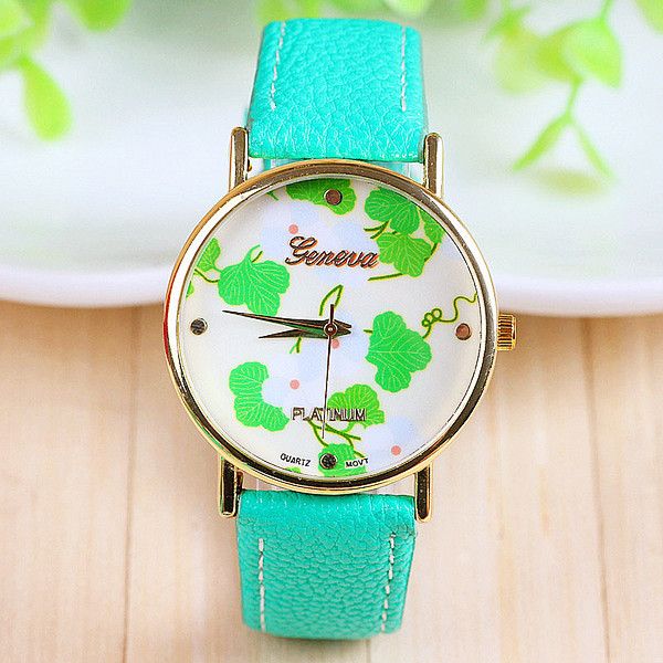 Green Leaves Leather Fashion Girl Watch