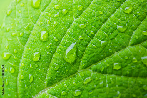 Green Leaf With Water Drops For Background Rain Drops Macro