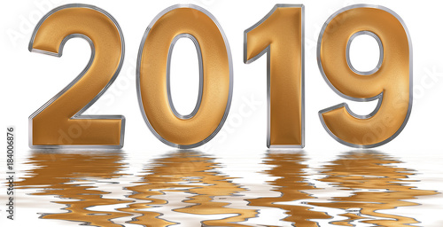 Numeral 2019 Reflection In Water Isolated On White