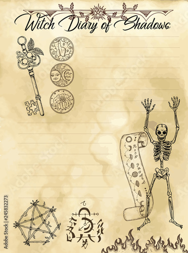 Witch Diary Page 3 Of 31 With Skeleton Pentagram Keys And