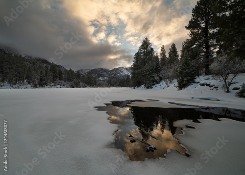 Colorful Clouds Over A Frozen Winter Lake License