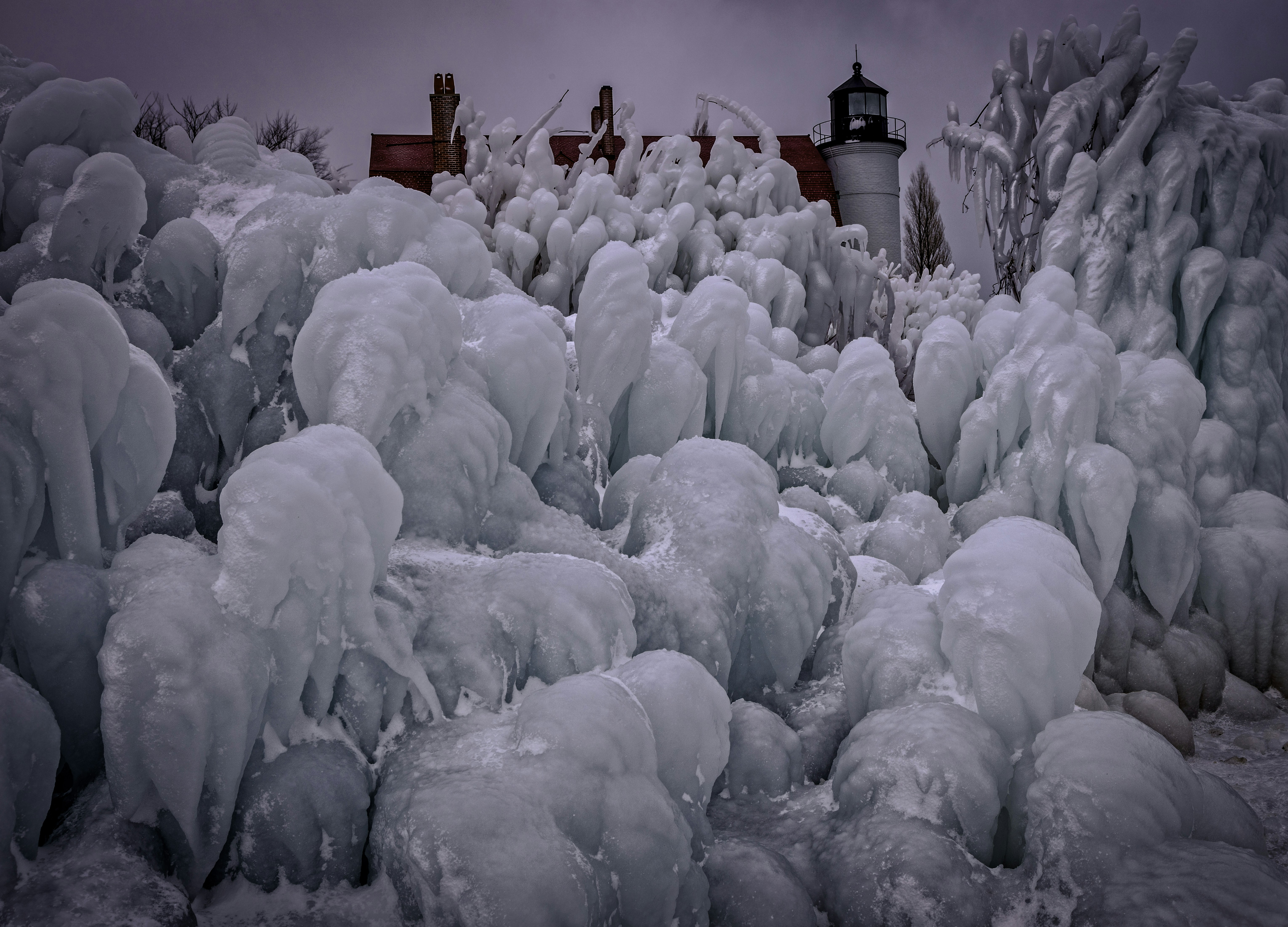 Hd Wallpaper Lake Michigan Lighthouse In Winter Trees