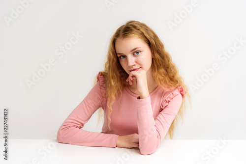 Studio Portrait Of A Beautiful Girl Blonde Teenager On A