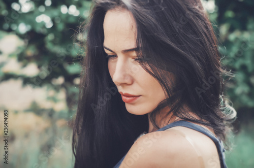 Close Up Portrait Charming Brunette Woman On Natural