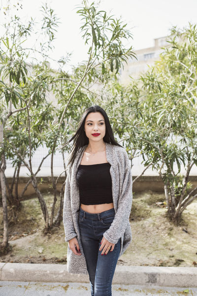 Outdoor Close Up Portrait Of Young Beautiful Brunette Girl