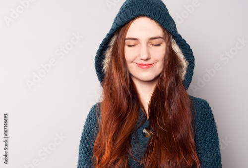 A Beautiful Happy Woman With Long Hair Dressed In A Warm