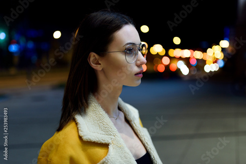Portrait Of Beautiful Brunette In Jacket And Glasses With