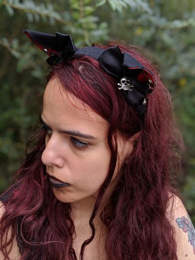 Pretty Punky Girl With Brightly Dyed Red Hair And Flowers