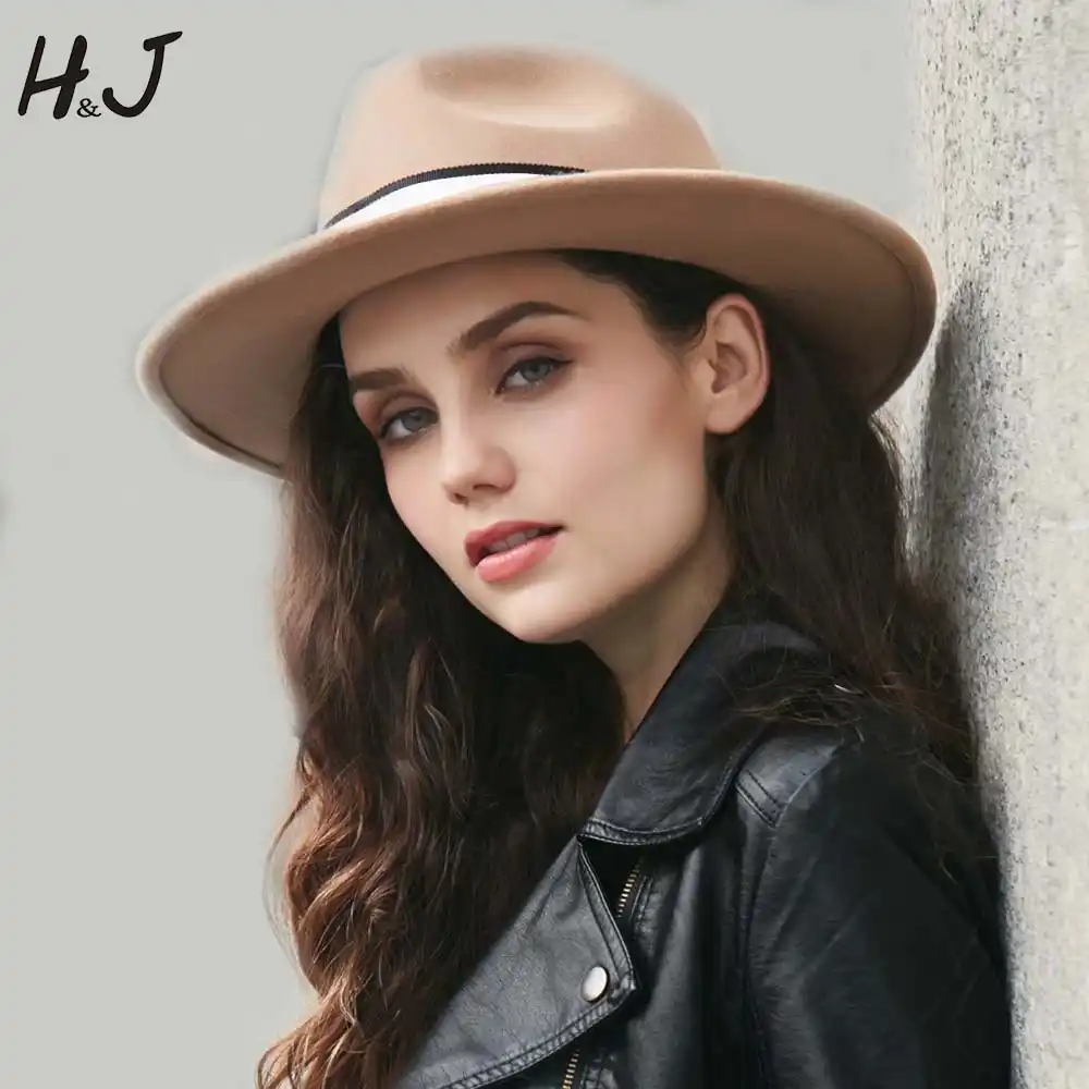Fashion Women Wide Brim Wool Outback Felt Fedora Hat Cloche