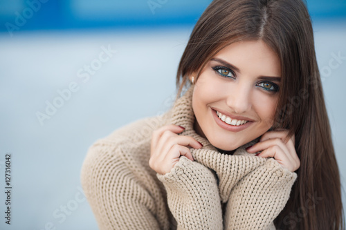 Portrait Of Beautiful Brunette Woman With Long Straight Hair