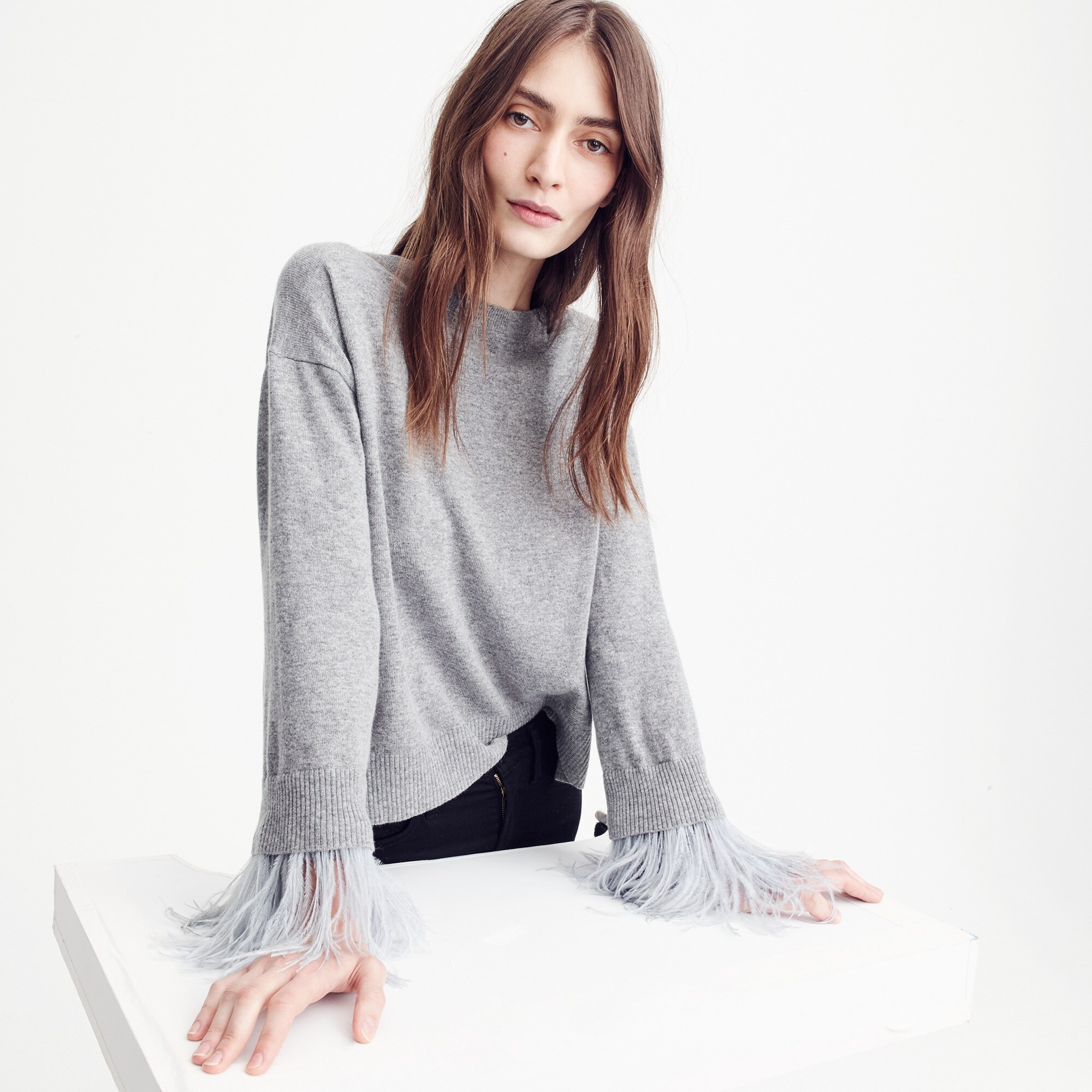 Crewneck Sweater With Feather Sleeves Women New Arrivals