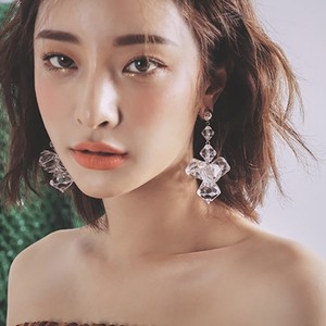 Details About 1 Pair Seaside Exaggerated Clear Crystals Large Flowers Drop Earrings For Women