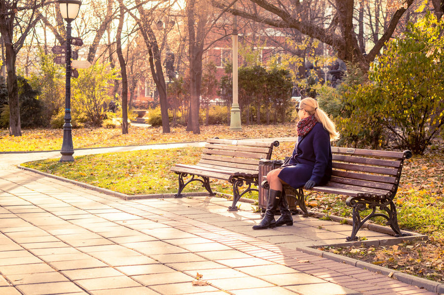 Wallpaper Park Bench Legs Fall Women Outdoors