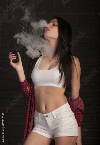 Young Beautiful Brunette Woman Smoking Vaping E Cigarette