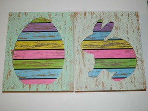 Details About Easter Bunny Egg Colorful Wood Wall Decorations Pictures Hanging Set 2 Pink Blue