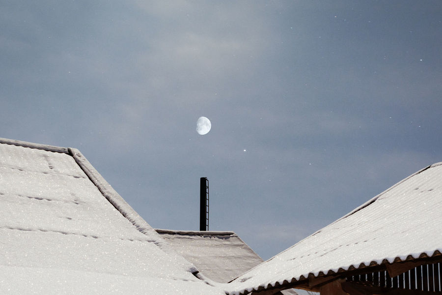 Wood House Nature Landscape Chimneys Smoke Moon